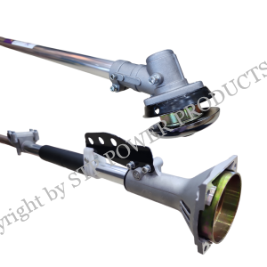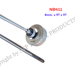 แกนเพลาตัดหญ้าขนาด 8mm. ปลายด้านหนึ่งเป็นเฟือง 9 ฟัน มาพร้อมถ้วยครัชรุ่นหัวผ่าและข้อต่อเพลา ความยาวโดยรวม 154.4cm.